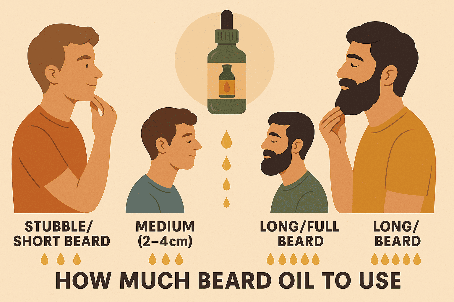 - Stubble / short beard: 2–3 drops.